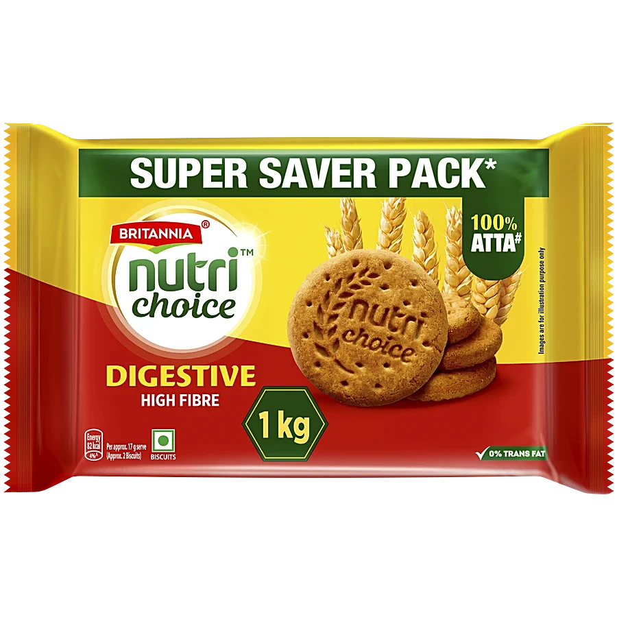 Britannia Nutrichoice Digestive High-Fibre Biscuits (1 kg) provide the perfect blend of health and taste. These biscuits, packed with whole wheat as well as dietary fiber, are healthy snacking options for those seeking to maintain a healthy lifestyle without compromising on taste.